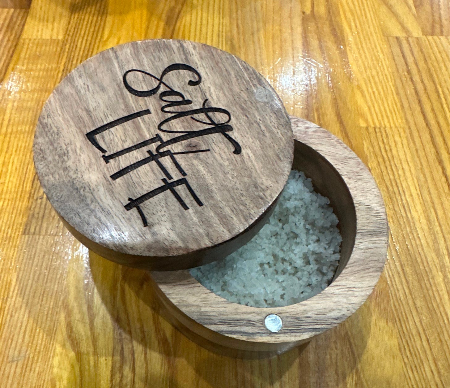 If you’d like a container like this for a place to put this salt for easy access on the kitchen counter, our partner Charming Chisel can make one for you!