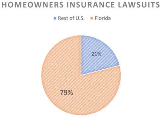 The chart above reflects the proportion of homeowners’ property insurance lawsuits as of January, 2023 in the US as compared to one state: FL. What’s wrong with this picture?